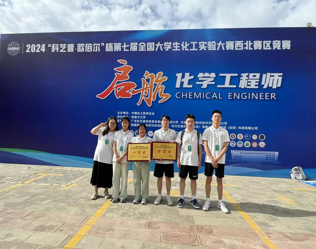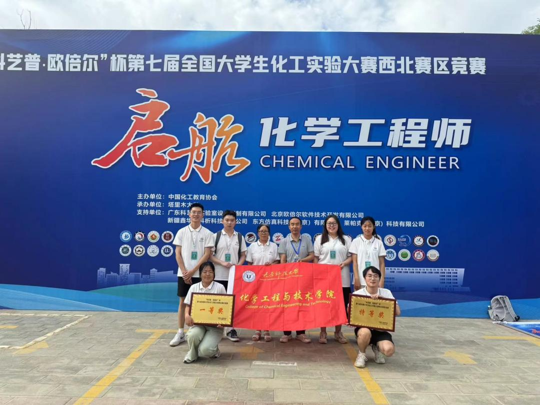 2024年7月14日-17日,由中国化工教育协会主办的“科艺普•欧倍尔”杯第七届全国大学生化工实验大赛西北赛区竞赛在新疆塔里木大学隆重举行。来自西北地区47所高校的87支参赛队伍参加了此次竞赛。由我校石国亮、王迎春等老师指导的以21级化学工程与工艺专业和能源化学工程专业学生柴浩宇和张焱燕为队长组建的奋发图强队和无限可能队两支代表队分别荣获西北赛区特等奖和一等奖的优异成绩,其中获得西北赛区特等奖的奋发图强队成功晋级第七届全国大学生化工实验总决赛,即将于8月8日-11日备战由天津大学承办的总决赛。