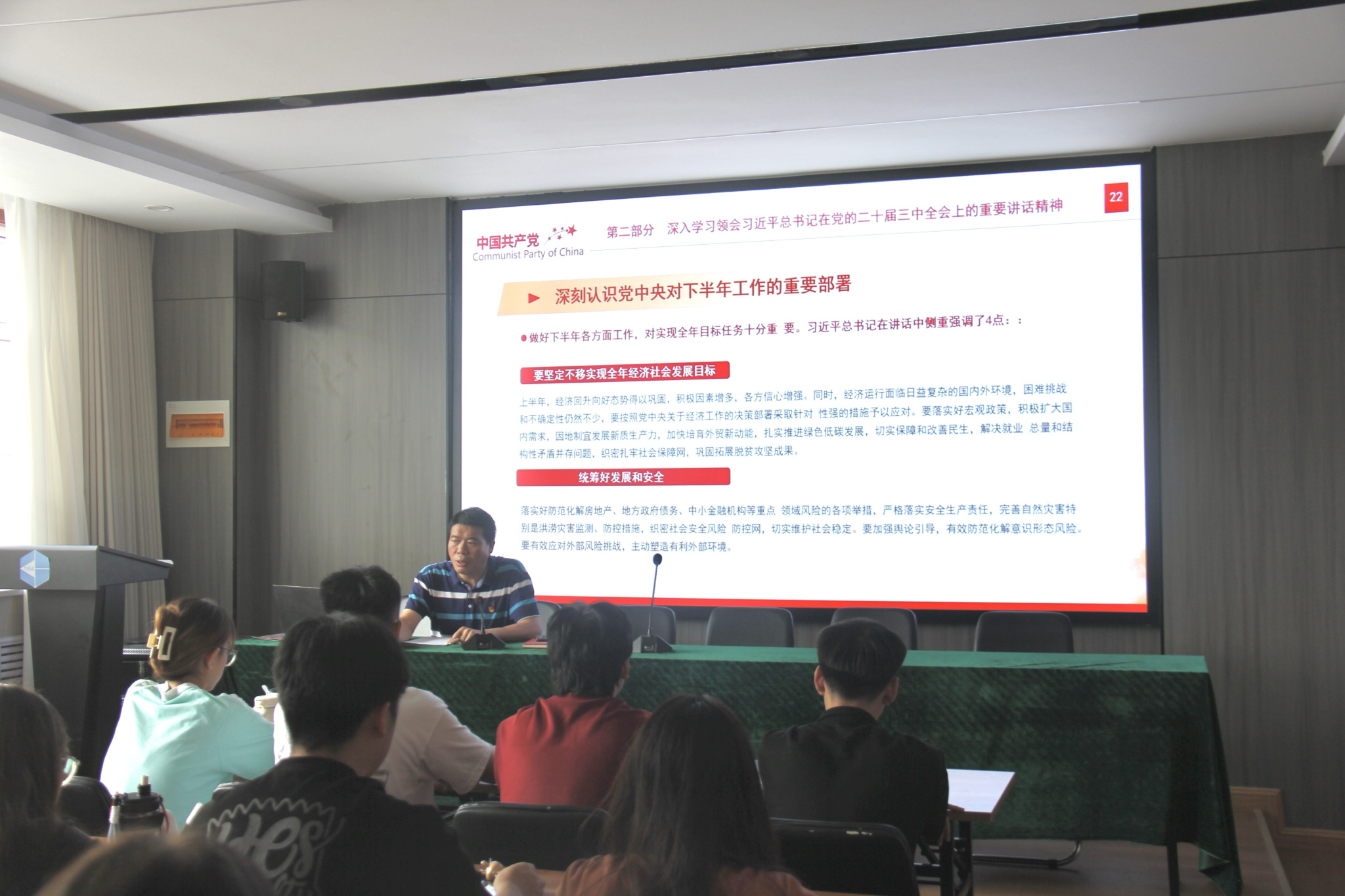 9月13日,在明志楼310报告厅学院党委书记韩建华以“学习贯彻党的二十届三中全会精神做全面深化改革的忠实拥护者、坚定践行者”为题为全院学生党员作专题党课。