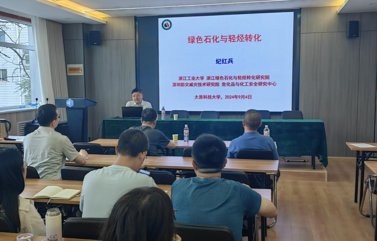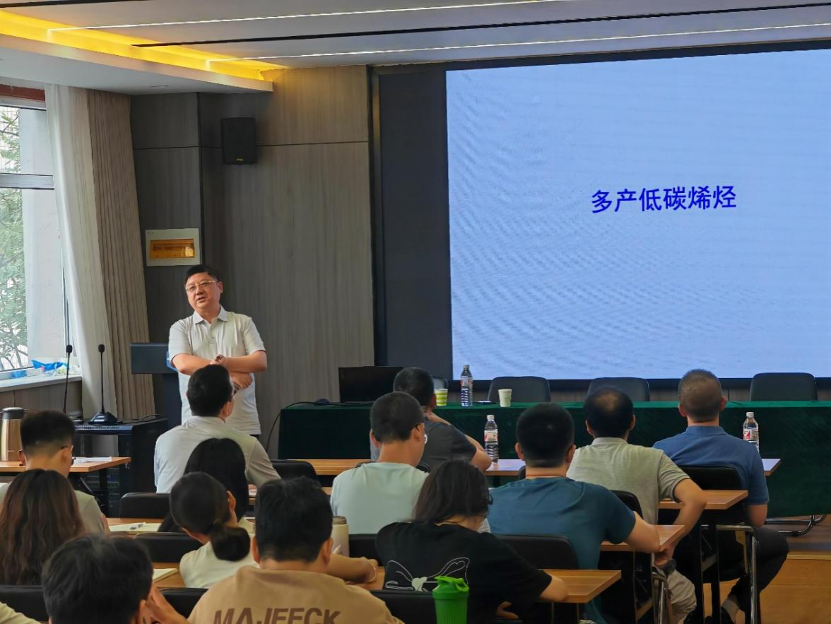 报告会上,纪教授指出我国石化行业已进入转型的关键时期,在“双碳”形势下,围绕多来源轻烃(轻质石脑油及其主要产物)开展催化裂解、仿生催化、烷烃脱氢、低碳分离、油气回收等研究,是实现轻烃低碳高效利用的有效途径。此外,纪教授结合自己在绿色化工技术及化工园区管理等方面的丰富实践经验,重点介绍了我国石化产业发展面临的产业结构矛盾等问题与挑战、仿生催化反应与工程、双碳下精细化工行业发展的困惑、智能化工技术等,分享了自己围绕产业驱动的“节能减排+资源+产品”的工作思路。纪教授从基础理论到前沿探索,从研究现状到未来趋势,为在场的师生们描绘了一幅波澜壮阔的科研蓝图。他特别强调了科研创新的重要性,鼓励大家要敢于挑战未知,勇于探索科学的新边疆。