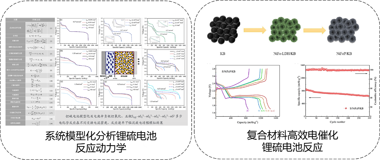 聚焦能源危机与环境污染问题,开发二次电池,助力资源经济快速发展。在系统模型化分析锂硫电池反应动力学以及复合材料高效电催化锂硫电池反应方面发表了代表性研究成果。未来还将聚焦能量密度、安全性能的改善提高,从电极材料、固态电解质等方面展开深入研究开发;对锂硫电池、金属-空气电池、水系电池体系关键材料、电极过程、装置构建进行系统研究;围绕二次电池中宏观电化学反应过程建模分析,构建通用二次电池系统模拟体系。