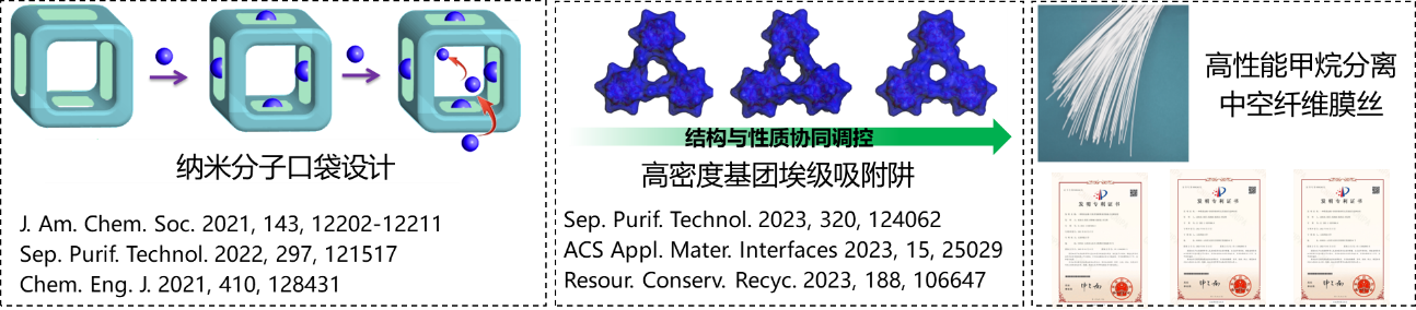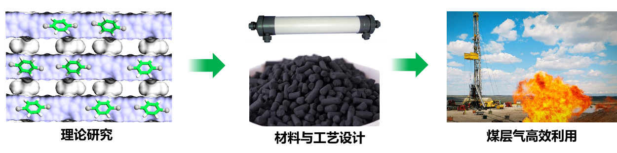 聚焦战略性产业煤层气领域,结合化工学院特色,探索多元化分级综合利用技术,构建“清洁低碳、安全高效”能源新体系。在煤层气分离与提浓领域,完成了变压吸附材料/膜材料的开发,包括:纳米分子口袋设计;高密度基团埃级吸附阱;高性能甲烷分离中空纤维膜丝。开发出宏量-低成本材料生产工艺,单次产量高、工业级原料、原料转化率高、成本低。未来将聚焦煤层气催化重整制氢中催化剂设计、造粒及规模化生产;吸附材料开发及装备设计中吸附剂开发与造粒、设备设计;膜分离工艺开发包括高分子膜/混合基质膜、膜组件等设计等。