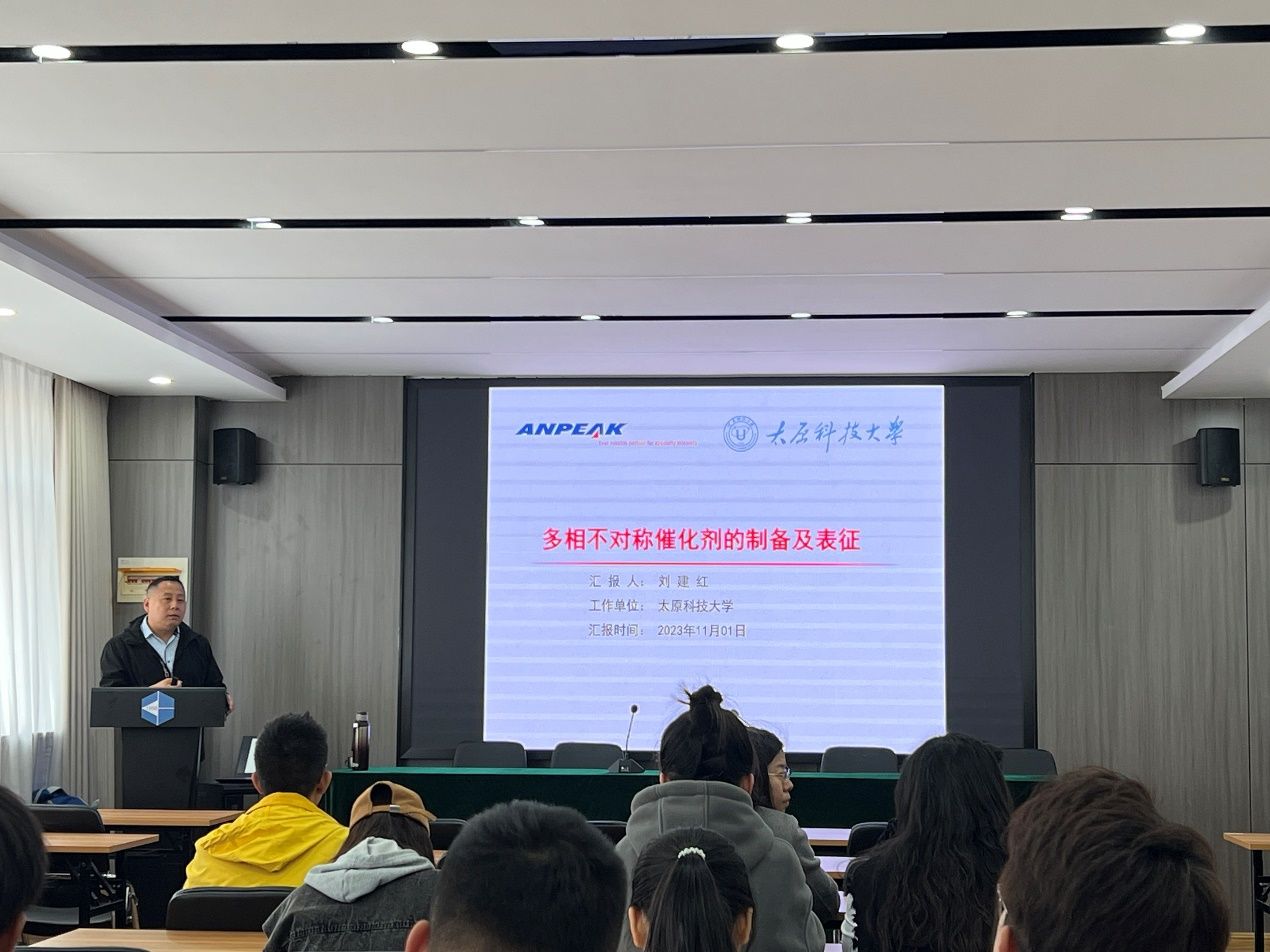 刘建红教授于2023.11.1下午2:30在312报告厅做学术报告,题目是:多相不对称催化剂的制备及表征。在立体选择性催化反应中,均相催化剂通常比多相催化剂显示出更高的活性和立体选择性,然而,在均相体系中很难进行产品的分离和催化剂的回收利用,均相催化剂的非均相化却可以解决上述问题。将均相催化反应转变为多相过程的常用方法是将催化活性中心固定在载体上—多相催化剂。刘建红老师分别介绍了多相催化剂的不同制备方法:原位合成、有机键联、立体封存、瓶中造船法等。比较了各种催化剂制备方法的优缺点,提出了多相催化剂合成的最佳途径,并详细介绍了多种表征手段,以及对催化剂结构的表征,在密切关注学术前沿的同时,讲述了催化剂的制备、催化反应的应用、手性药物的合成,并对下一步的工作进行了合理的规划。